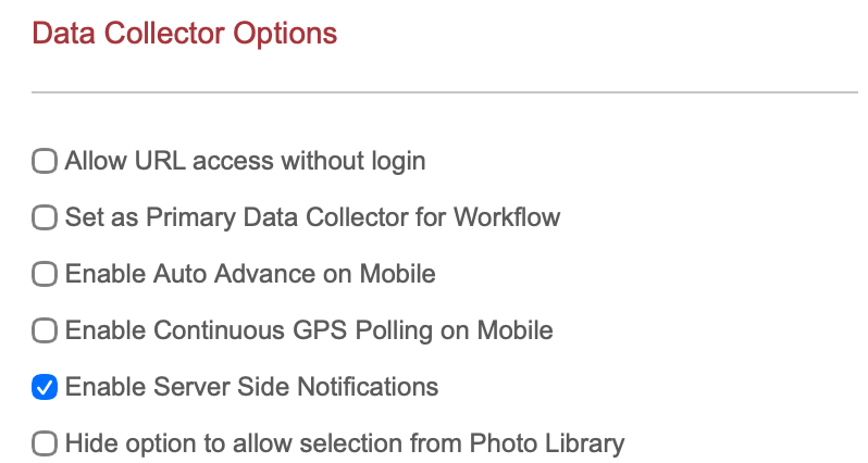 - Enable ‘Enable Server Side Notifications’ in ‘Data Collector Options’