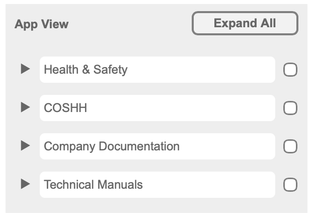 An Expand All button appears at the top of the App View section. Clicking it expands every folder at once. Once all folders are expanded, the button changes to Collapse All.
